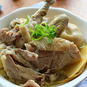 食材:走地雞600克、生姜10克、青檸檬10克、小蔥5克、紅蔥頭10克、清水2碗、鹽4克、雞肉精粉