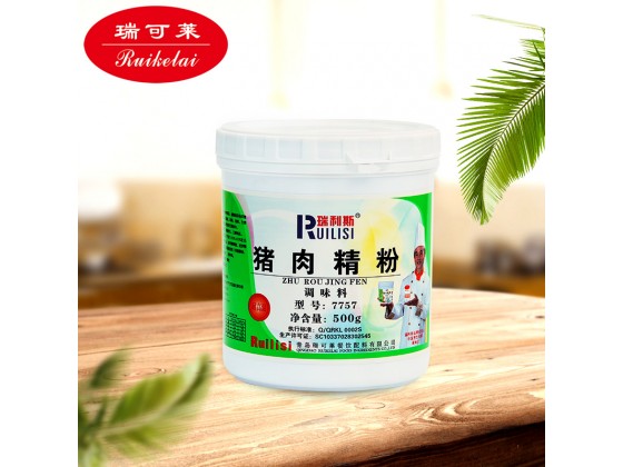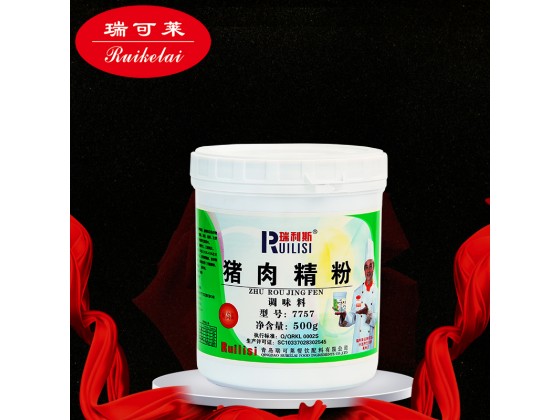 2、將豬肉依次加入鹽,豬肉精粉,糖,叉燒醬,酒,生抽,老抽,蠔油,蒜末等材料。