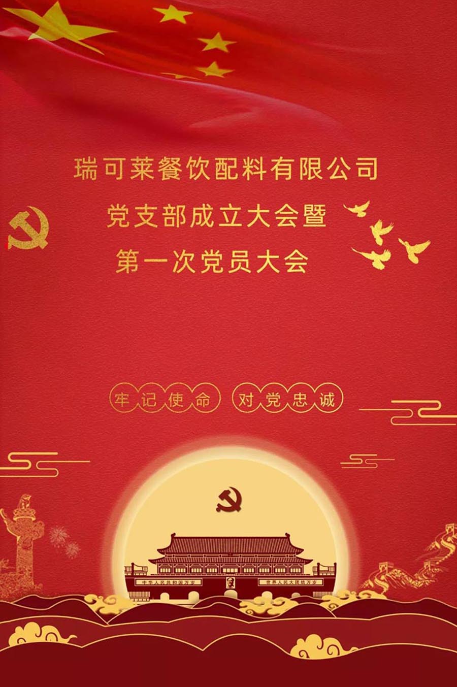 11月14日9:00時,公司組織全體黨員在會議室召開瑞可萊餐飲配料有限公司黨支部成立大會暨第一次黨員大會。