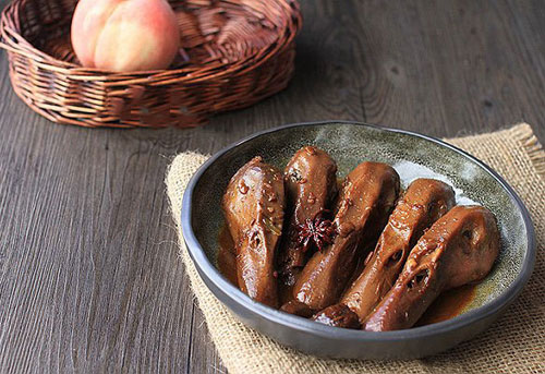 1、鴨頭洗凈,焯水,水開后滾五分鐘左右撈出,再沖凈表面的浮抹待用。